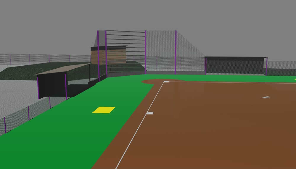 - und eines Wetterschutzes mit Spielerbänken (Dugouts) am Spielfeld.